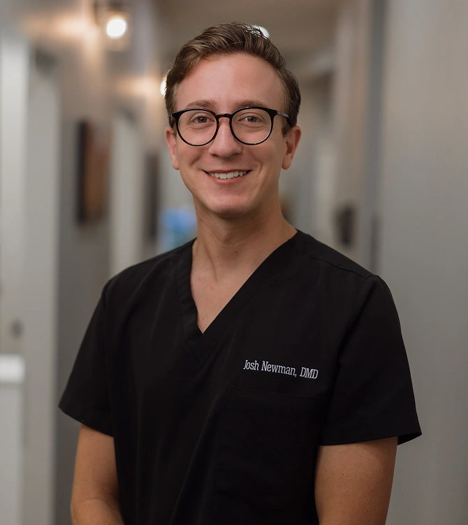 Dr. Josh Newman’s journey into dentistry was a natural progression influenced by a family deeply rooted in oral healthcare. Growing up surrounded by dental professionals—both parents, a grandfather who practiced general dentistry, and several aunts in dental hygiene—Dr. Newman was immersed in the field from an early age. Despite briefly exploring Exercise Science during college, his path crystallized when he began shadowing his father in dental offices. Witnessing the transformative impact of dental care on patients’ lives—whether through restoring smiles or alleviating pain—solidified his passion for dentistry. Dr. Newman was drawn to the technical challenges and the dynamic nature of the profession, including its integration with advancing technologies.